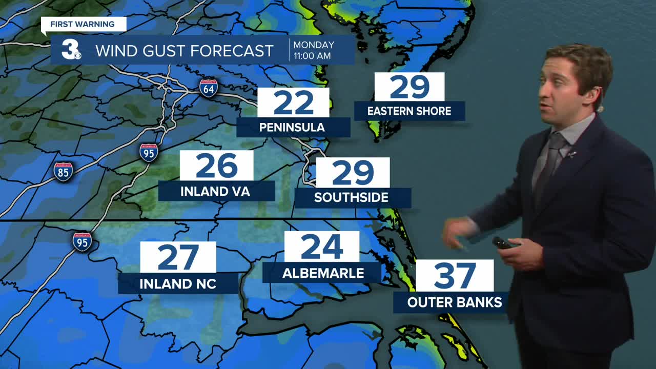Tomorrow will be improved from today, with mostly cloudy skies along with a few lingering showers possible. Our winds will be lighter tomorrow, out of the NW at 10-20 mph with gusts up to 30 mph possible (higher OBX). Highs will be in the mid to upper 60s. Minor tidal flooding is possible Monday afternoon. On Tuesday a mix of sun and clouds are expected, with mainly dry weather besides a couple isolated afternoon sprinkles. Highs will be in the mid to upper 60s, with winds out of the N at 10-20 mph. Nuisance tidal flooding is possible on Tuesday.