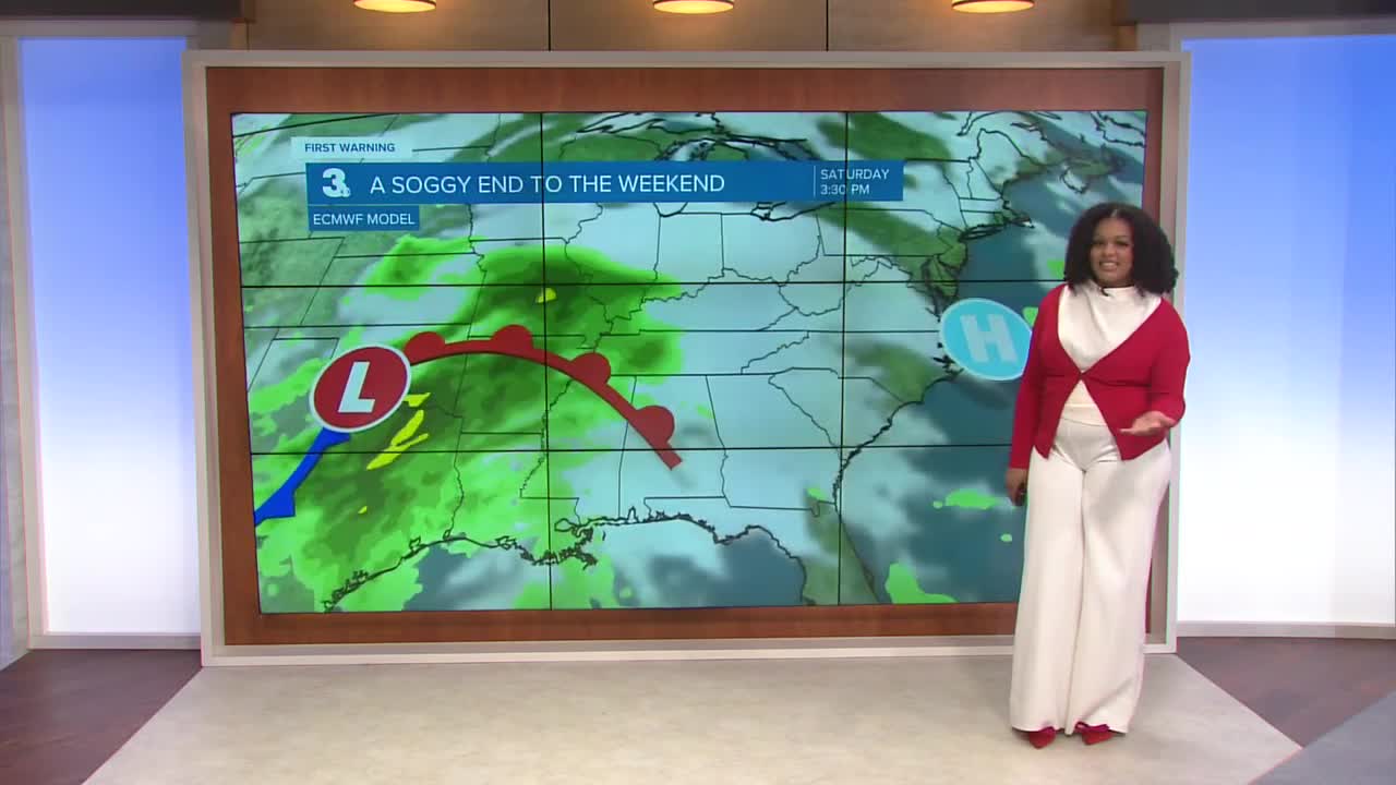 Skies gradually clear throughout the day on Monday. A few spotty shower chances linger midweek, but temperatures will be much milder with highs in the low to mid 60s by Thursday.