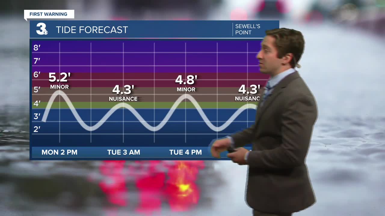 Today we're expected to see some improvement in the forecast, with less tidal flooding along with little rain and lighter winds. Highs will reach the mid to upper 60s with winds out of the N at 10-20 mph, gusting to 30 mph. Lingering showers and drizzle are expected throughout the day, with minimal rainfall accumulations expected. Minor to moderate tidal flooding is expected during the afternoon high tide. Tonight temperatures will drop into the 50s with cloudy skies remaining.