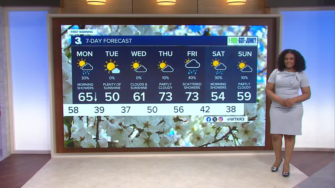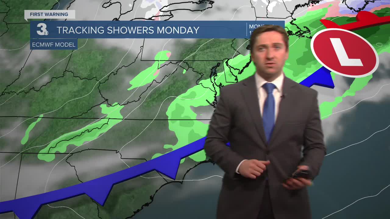 Clouds build in overnight ahead of our next cold front. Monday morning will be mild with temperatures in the 60s and 70s with a few isolated showers. The rain and clouds clear out by the afternoon. As the cold front crosses the region, temperatures will be falling throughout the day.