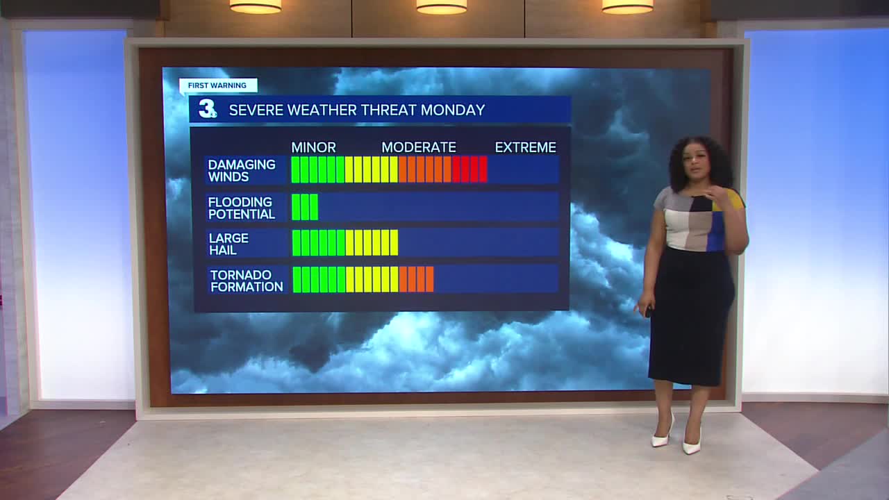 A level 4 out of 5 severe weather threat is in place for parts of the area Monday. The last time we saw level 4 threat was 5 years ago in 2021.
