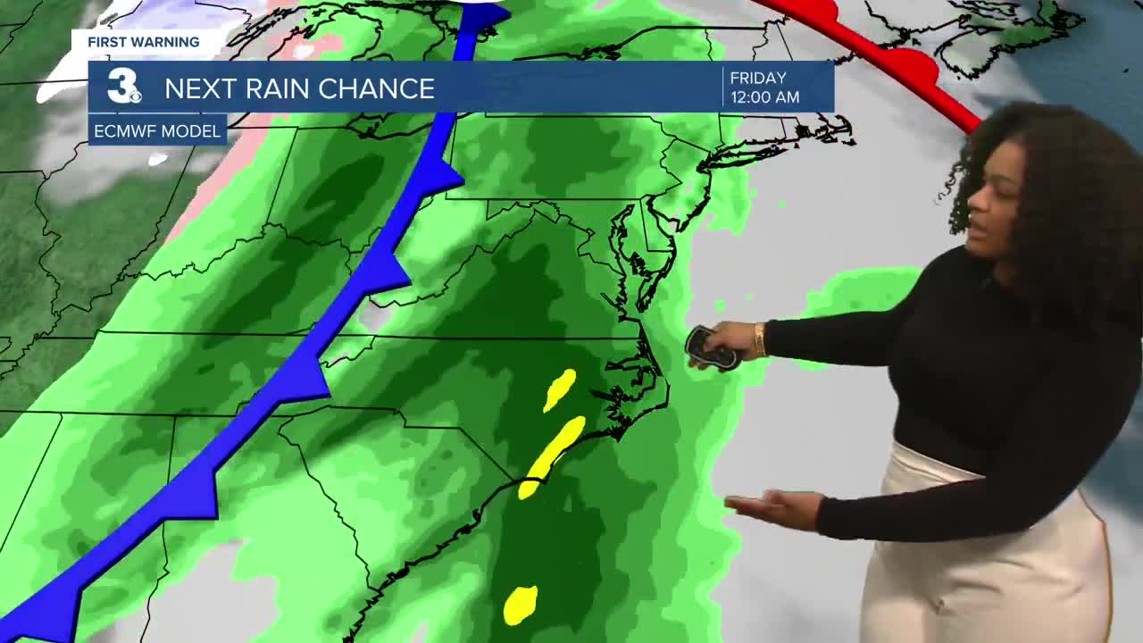 Temperatures are much milder than they have been over the last couple of days. We’ll reach near 60 today.