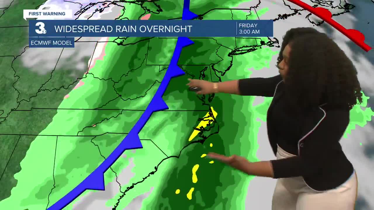 A cold front will bring widespread soaking rainfall overnight tonight. Winds could gust up to 35 mph. A few leftover showers will linger Friday morning, but conditions will gradually clear as temperatures fall throughout the day.