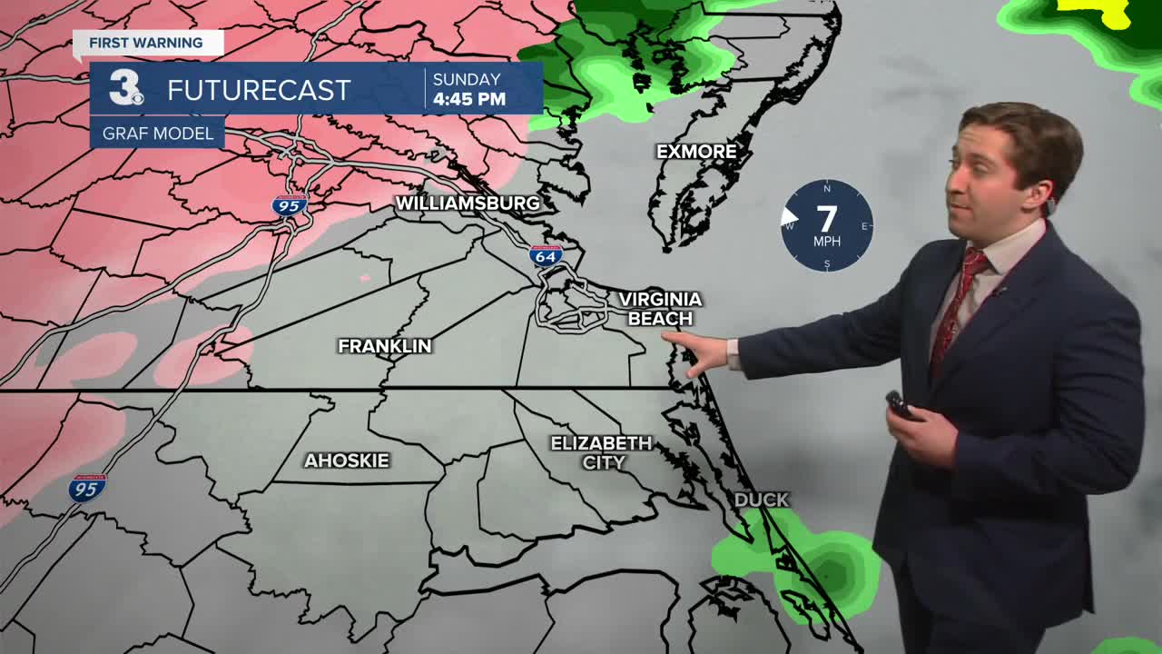 LOOKING AHEAD: Tuesday will be sunny and cold, with highs in the low 30s with breezy conditions expected. Cold weather will stay in place to end out January. Our next chance of snow will be on Thursday morning, with a clipper system bringing some scattered snow showers to Hampton Roads.
