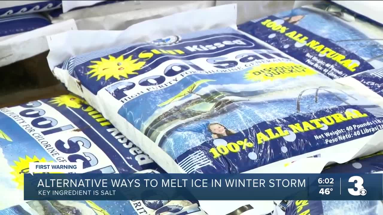 Safer alternatives include fertilizer, sugar beet juice or baking soda. These products contain salt compounds that can help melt ice, though they typically work more slowly than commercial ice melt.