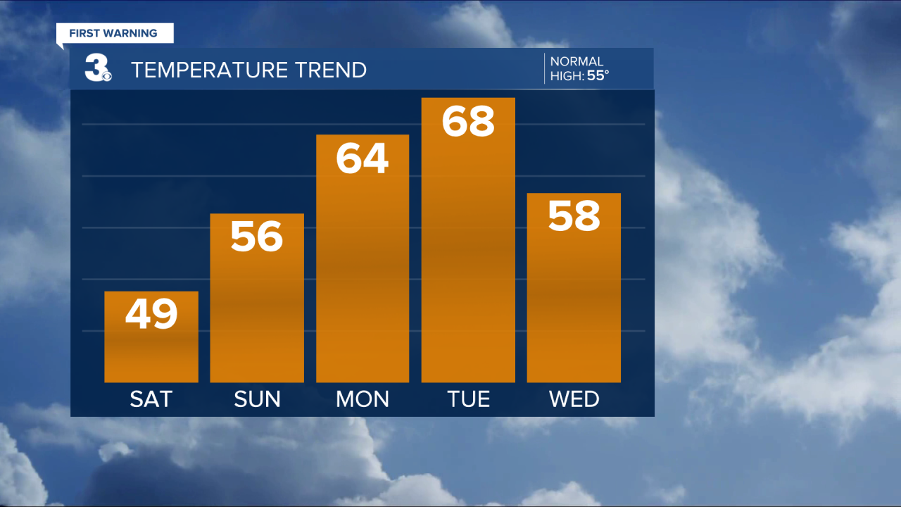 Our warming trend kicks into high gear on Monday and Tuesday. Some of us could even touch 70 degrees on Tuesday.