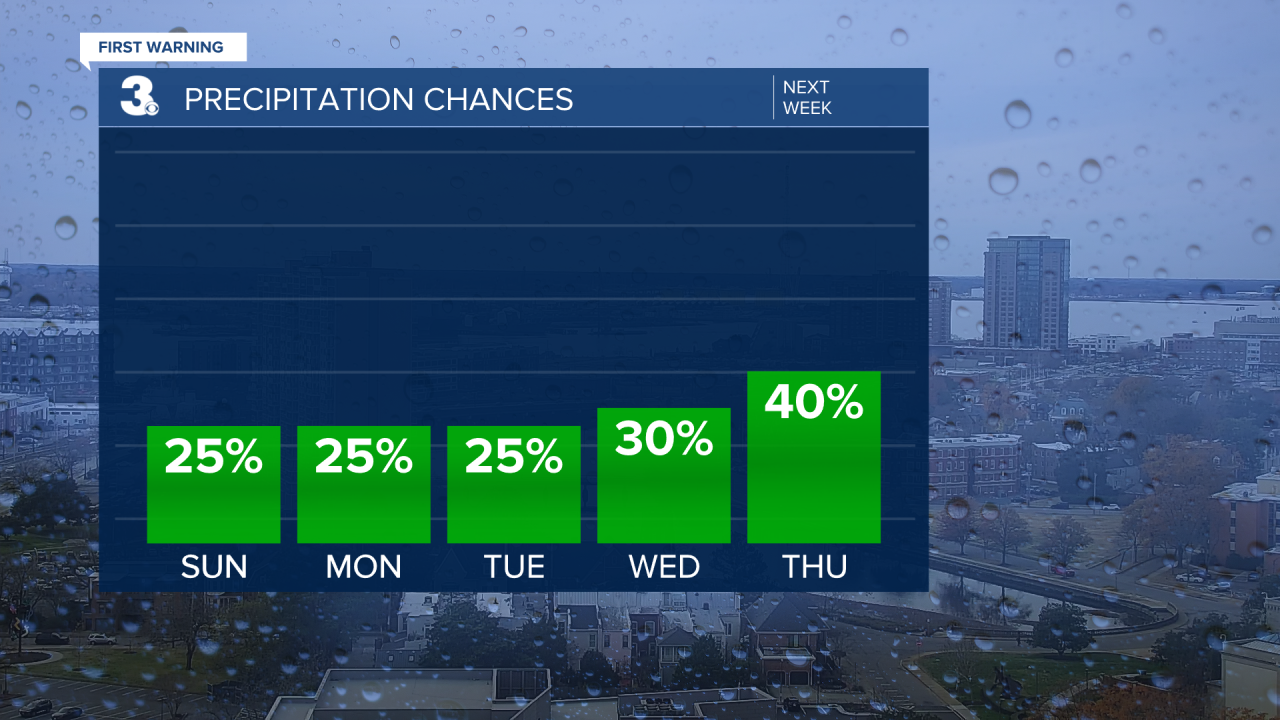 And those cold front bring several chances for wet weather, especially on Thursday. Stay tuned.