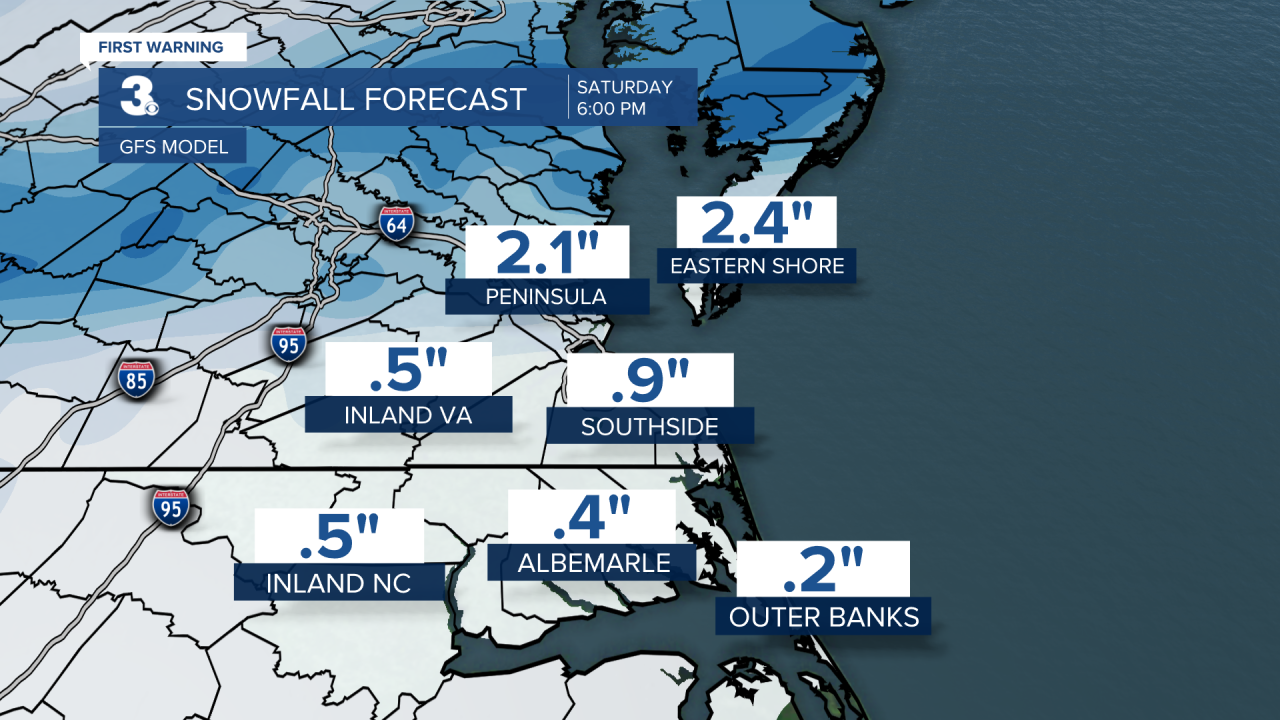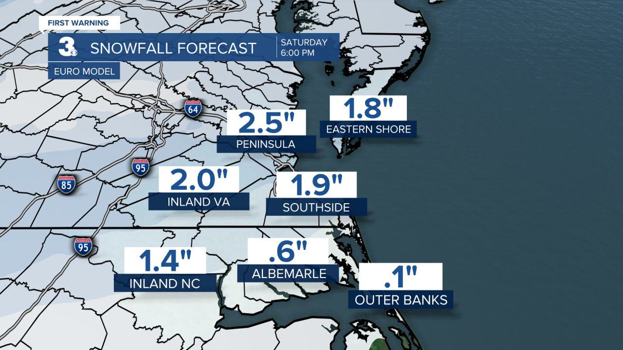 Our two longer-range forecast models are split. The European Model is painting in mainly snow and the GFS shows a mix of rain, sleet and snow.